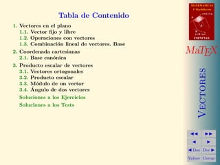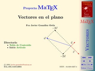 Este documento presenta conceptos básicos sobre vectores en el plano para el primer año de bachillerato. Introduce la noción de vector fijo y libre, y define vectores equipolentes. Explica operaciones con vectores como el producto de un número por un vector. Finalmente, ilustra gráficamente ejemplos de vectores múltiplos.