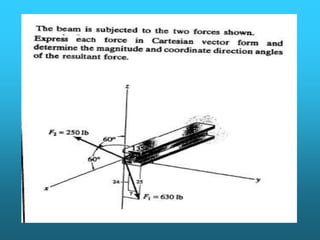 Este documento presenta información sobre vectores unitarios en el plano y en el espacio tridimensional. Define vectores unitarios como vectores cuya magnitud es igual a la unidad y utiliza los símbolos i y j para representar vectores unitarios en las direcciones de los ejes x e y positivos, respectivamente. También cubre conceptos como el producto escalar y vectorial de vectores, sumas y restas vectoriales, y multiplicación de un vector por un escalar.
