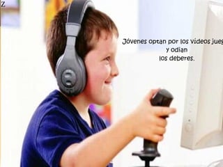 Este documento discute las ventajas e inconvenientes de las tecnologías de la información y la comunicación (TIC) en la educación moderna. Señala que las TIC promueven el cambio en las instituciones educativas pero que los jóvenes a menudo prefieren los videos juegos sobre los deberes. También menciona la importancia de la capacitación de directivos, docentes, estudiantes y padres de familia para aprovechar mejor las TIC en la educación.