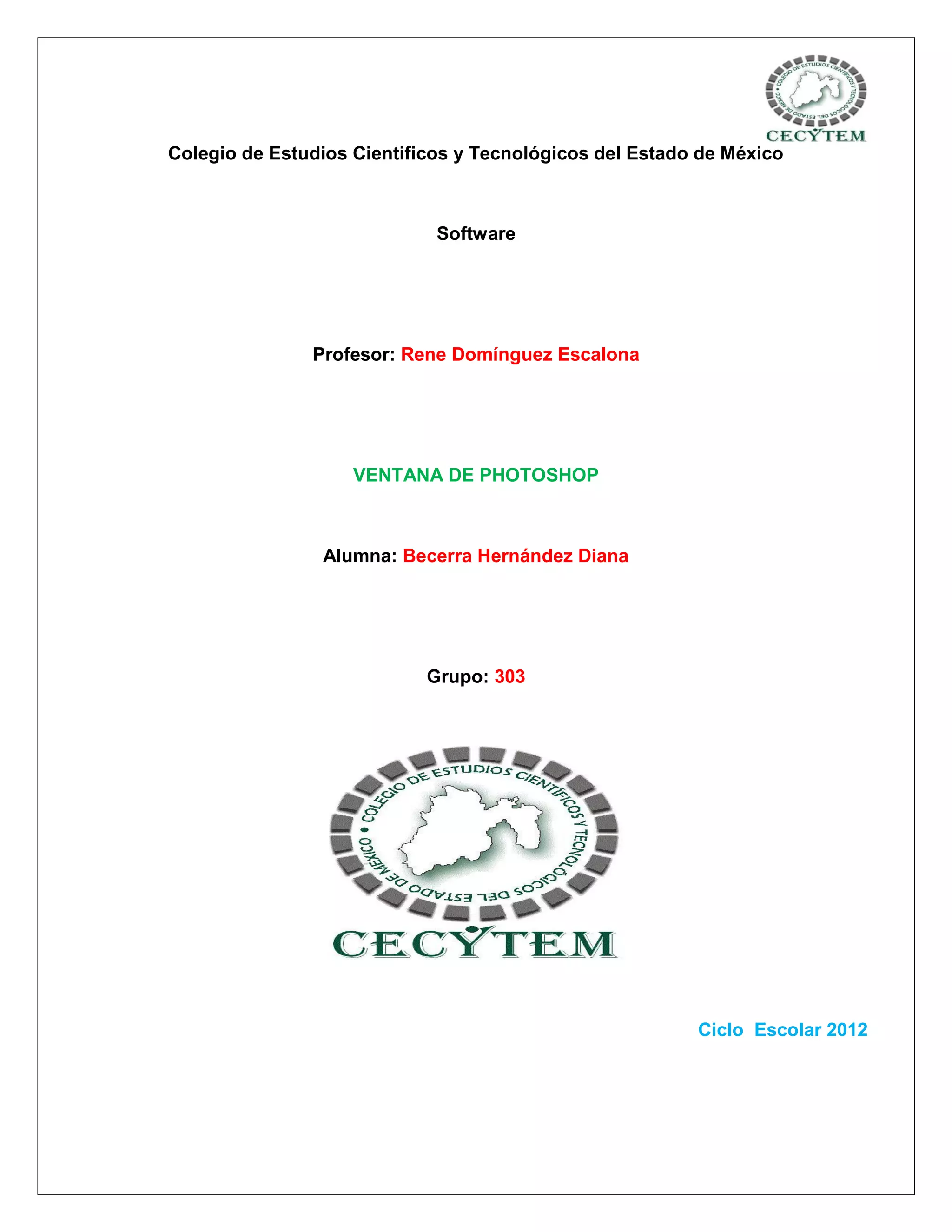 Este documento describe las principales partes de la ventana de Photoshop, incluyendo la barra de menú, la barra de opciones, la ventana de la imagen, la barra de estado y la barra de herramientas. Explica que la barra de opciones cambia según la herramienta seleccionada y permite mover y acoplar paletas flotantes. También describe cómo usar la barra de estado para cambiar el zoom y obtener información sobre el documento.