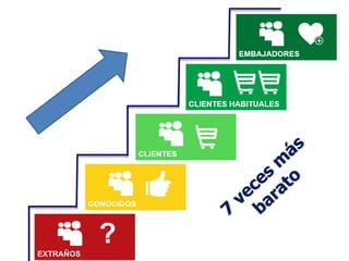 Este documento proporciona consejos y estrategias para mejorar las ventas. Algunas de las recomendaciones clave son adaptarse a las necesidades de los clientes en lugar de esperar que ellos se adapten, ver las cosas desde la perspectiva del cliente, ofrecer experiencias gratificantes que añadan valor, ser el primero y original para diferenciarse de la competencia, y utilizar la conectividad y las redes sociales como WhatsApp para fidelizar a los clientes y mantenerse en contacto con ellos.