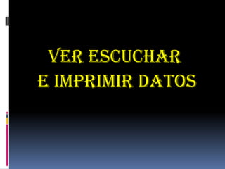 Este documento contiene información sobre diferentes tipos de monitores, tarjetas de video y dispositivos de salida de información como data shows. Describe monitores CRT monocromáticos y en color, diferentes tipos de tarjetas de video como PCI, PCI-X, AGP y PCI-Express, y explica que un data show es una pantalla plana que se puede usar con un retroproyector para proyectar información de manera ampliada. También define una tarjeta de sonido como un dispositivo hardware que permite procesar sonido de entrada y salida en una comput