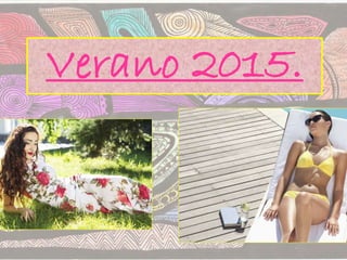 El documento presenta las principales tendencias de moda para el verano 2015, incluyendo colores como el celeste, rosa pastel y gris; estampados tropicales y florales; y un estilo minimalista con líneas simples. También recomienda prendas como blazers sin mangas, shorts y faldas de cintura alta. Por último, brinda consejos para el cuidado de la piel en verano, sugiriendo el uso de protectores solares, cremas ligeras y reducir el maquillaje.