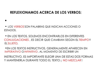 Revisamos un texto instructivo, reflexionando sobre los verbos. 4° EPB Colegio Las Cumbres Prof María José Castilla Sastre