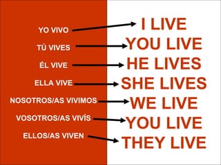 El documento explica el uso del presente simple en inglés. Se utiliza para hablar de rutinas, hábitos y costumbres. Explica las formas para la primera, segunda y tercera persona del singular y plural. También cubre la forma negativa y interrogativa del tiempo verbal. Proporciona ejemplos de verbos comunes y oraciones de ejemplo.