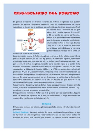 El calcio y el fósforo juegan un papel importante en el metabolismo del cuerpo. El calcio se encuentra principalmente en los huesos y desempeña un papel clave en la transmisión de impulsos nerviosos, la contracción muscular y la coagulación de la sangre. El fósforo se absorbe principalmente en forma de fosfatos y desempeña un papel en varias reacciones enzimáticas. Tanto el calcio como el fósforo son regulados por hormonas como la parathormona y la calcitonina y son necesarios para la