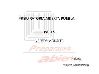 Este documento explica los verbos modales en inglés. Explica que los verbos modales se añaden a otros verbos para expresar modos como posibilidades, condiciones, permisos, habilidades, obligaciones y recomendaciones. Identifica doce verbos modales principales y explica sus usos y significados, incluyendo can, could, may, must, should, would y otros. También clasifica los verbos modales según su significado y proporciona ejemplos detallados de cómo se usan en diferentes contextos.
