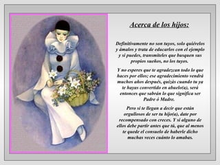 Este documento contiene consejos de un empresario chileno sobre varios temas de la vida. Algunos de los consejos incluyen amar y educar a los hijos con el ejemplo en lugar de esperar su agradecimiento; agradecer a los padres por darte la vida; no desafiar al mar y el viento sino admirar la naturaleza; y ayudar a aquellos que son igual de capaces pero no han tenido las mismas oportunidades.