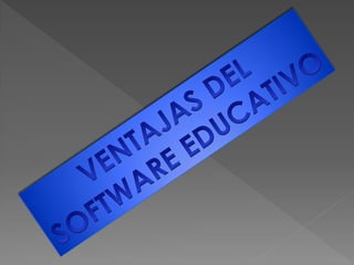 El documento habla sobre el software educativo. Explica que son programas didácticos creados para facilitar los procesos de enseñanza y aprendizaje. Sus principales características son que tienen un uso didáctico, se utilizan en ordenadores, individualizan el trabajo de cada estudiante, son interactivos y fáciles de usar. Además, propician diferentes tipos de aprendizaje y permiten la construcción de conocimientos.