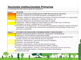 La resolución reconoce el programa "Políticas de Gestión Ambiental Sustentable de la UNC" y aprueba sus lineamientos de implementación. Se crea una Unidad Central de Gestión Ambiental Sustentable para impulsar los objetivos del programa, que incluyen promover la percepción de los aspectos ambientales en la comunidad universitaria y proponer acciones de prevención, mitigación y remediación de problemas ambientales.