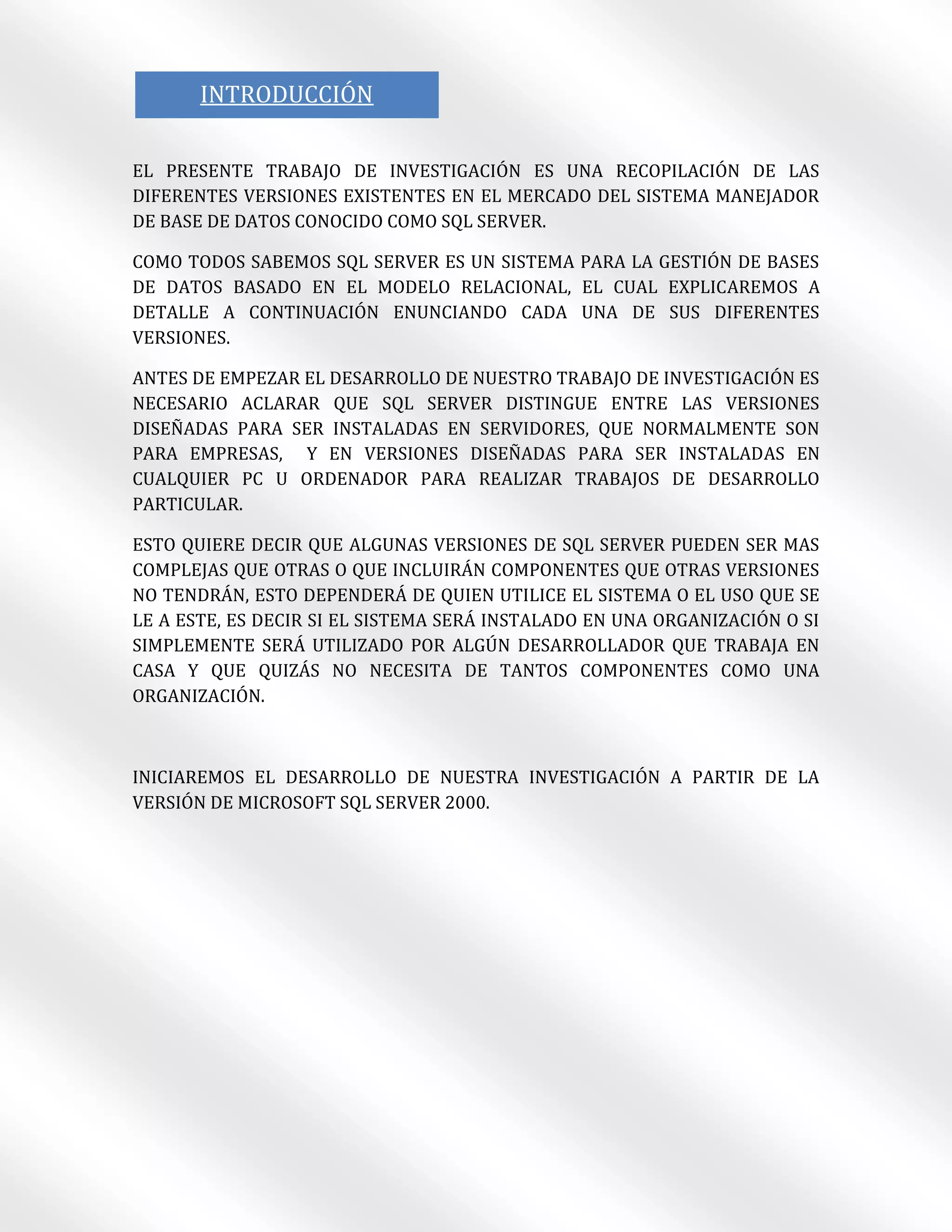Este documento resume las diferentes versiones de Microsoft SQL Server 2000. Describe las ediciones de servidor como Enterprise Edition y Standard Edition, así como ediciones de uso especial como Personal Edition y Developer Edition. Detalla las características y diferencias entre las ediciones. También describe las novedades de SQL Server 2000 como mejoras en la base de datos relacional, integración XML, servicios de análisis y servicios de metas.