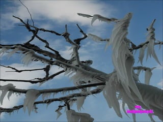 El documento describe una formación de hielo invernal cerca del lago Léman en Versoix, Suiza. El viento levanta agua del lago durante los días y noches fríos del invierno, creando caprichosas formas de hielo que son una increíble obra de la naturaleza.
