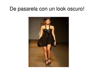La moda trata sobre diferentes looks oscuros, vestidos casuales para el diario y vestidos de un solo hombro para ocasiones especiales. Se menciona la posibilidad de ir con el mismo vestido que otra persona a una fiesta.