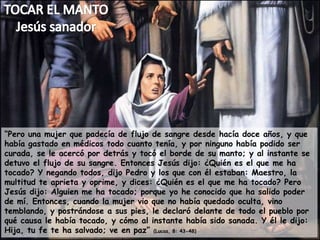 El documento describe varios pasajes bíblicos relacionados con los vestidos de Jesús y su crucifixión. Muestra cómo Jesús se humilló a sí mismo al quitarse el manto y lavar los pies de sus discípulos. También cómo fue rechazado, humillado y crucificado, cumpliendo profecías sobre el reparto de sus vestidos. A través de estos actos, Jesús demostró su amor, servicio y obediencia al Padre a pesar del sufrimiento.