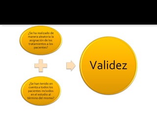El documento hace una distinción entre la significación estadística y la relevancia clínica. Explica que aunque los resultados de un estudio pueden ser estadísticamente significativos, es posible que no sean clínicamente relevantes o importantes para el paciente. Finalmente, proporciona un enlace a un sitio web que contiene más información sobre este tema.