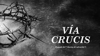 Este documento presenta las 14 estaciones del Vía Crucis. Cada estación describe una escena de la Pasión de Cristo, incluyendo cuando fue condenado a muerte, cargado con la cruz y cuando cayó bajo su peso. Entre cada estación se incluyen oraciones como el Padre Nuestro y Ave María. El objetivo es ayudar a los fieles a reflexionar sobre el sufrimiento de Cristo y pedir perdón por sus pecados.