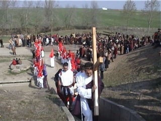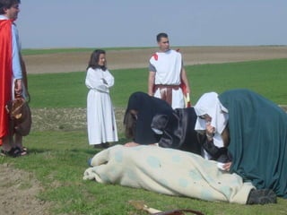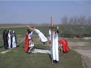 Este documento describe el Viacrucis de Fresno el Viejo, un pueblo de Valladolid rodeado por dos ríos y conocido por su arquitectura románico-mudéjar y tradiciones. Relata las 14 estaciones del Viacrucis, desde la condena a muerte de Jesús hasta su entierro, que la localidad conmemora durante la Semana Santa para recordar el camino de Jesús hacia la cruz.