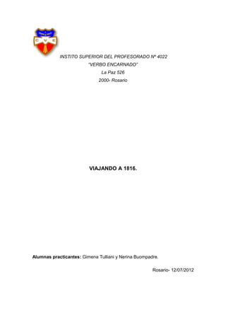 El documento presenta una unidad didáctica para abordar la declaración de la independencia argentina del 9 de julio de 1816 en una clase de primer grado, destacando la importancia del tema para afianzar la identidad nacional de los alumnos. Se proponen actividades que fomentan la creatividad y el diálogo, utilizando narrativas e imágenes históricas para facilitar la comprensión del contexto. Se incluyen objetivos y estrategias de enseñanza, así como recursos necesarios para la implementación de dos clases de 80 minutos cada una.