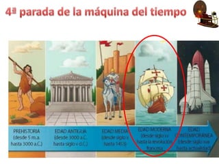 Este documento resume los principales hitos y cambios ocurridos entre la Edad Media, la Edad Moderna y la Edad Contemporánea. Destaca eventos como la caída de Constantinopla en 1453, la Revolución Francesa en 1789 y la conquista de América en 1492. Explica los cambios sociales, económicos, políticos, religiosos y culturales durante estos períodos, así como el desarrollo tecnológico que facilitó los viajes de exploración. Finalmente, resume el primer viaje de Cristóbal