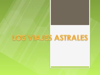 Este documento describe un viaje astral como la capacidad del alma humana para proyectarse fuera del cuerpo físico durante el sueño o la meditación. Explica que durante el sueño el alma se separa del cuerpo, y que es posible desarrollar la habilidad de hacerlo conscientemente a través de prácticas de relajación y concentración. También incluye enlaces de video que pretenden mostrar evidencia de viajes astrales, e instrucciones sobre cómo realizar uno de manera voluntaria separándose del cuerpo en el estado de du