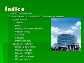 La familia González pasará 7 días en la Región de la Araucanía en Chile, donde visitarán las ciudades de Temuco, Pucón, y lugares como el Parque Nacional Huerquehue y el volcán Villarrica. Disfrutarán de la culinaria local como la carbonada y la plateada, y conocerán la cultura e historia mapuche, incluyendo festivales como Wetripantu. También explorarán museos en Temuco.