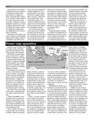 El documento describe la vida y obra del apóstol Pablo. Explica que Pablo nació en la ciudad de Tarso alrededor del año 5 d.C. y fue educado en la fe judía como fariseo. Experimentó una conversión mientras viajaba a Damasco y pasó a predicar el evangelio de Cristo a los gentiles. Realizó varios viajes misioneros para fundar iglesias y escribió numerosas cartas que forman parte del Nuevo Testamento.