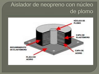 Este documento discute el control de vibraciones en estructuras como puentes. Explica que las vibraciones pueden ser forzadas o libres, y que la resonancia puede ser perjudicial. También describe dispositivos para medir y controlar vibraciones, como aisladores de base, y métodos para analizar las vibraciones en puentes.