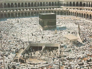 1) El documento describe el nacimiento y expansión del Islam tras la muerte del profeta Mahoma, incluyendo la elección de los cuatro califas iniciales y sus conquistas. 2) Explica el surgimiento de las dinastías Omeya y Abasí, que expandieron considerablemente el imperio islámico. 3) Menciona otras dinastías como los Fatimíes y los Omeyas de España.