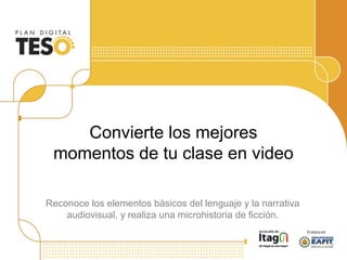 Este documento presenta conceptos básicos del lenguaje audiovisual y la narrativa para la creación de videos, incluyendo la composición de imágenes, planos, ángulos, movimientos de cámara, estructura narrativa y elementos como personajes y conflicto. Finalmente, propone como actividad que los estudiantes escriban y graben una microhistoria de un minuto utilizando estos conceptos.