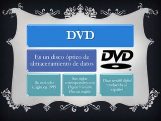 Este documento presenta información sobre varios formatos de video y audio digitales como DVD, VCD, AVI, DivX, Blu-ray, MPEG, MP3 y MP4. Explica el propósito, fecha de lanzamiento y especificaciones técnicas de cada formato. La información fue obtenida de Wikipedia.