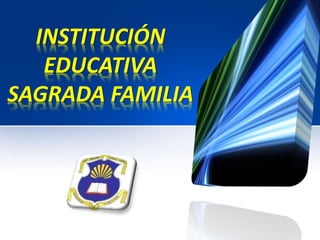 Este documento presenta la misión, visión e información general de la Institución Educativa Sagrada Familia. Su misión es formar personas con valores y competencias académicas, técnicas y actitudinales comprometidas con la sociedad. Su visión es ser reconocida en el 2015 como una organización líder en formación holística. También describe su proyecto de calidad institucional GIMECA, cuyo propósito es mejorar los procesos administrativos y la prestación de servicios educativos para satisfacer a los usuarios.