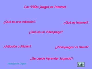 El documento analiza los efectos de los videojuegos en la salud y el rendimiento académico de los jóvenes, destacando tanto sus potenciales beneficios, como la mejora de habilidades y el fomento de la constancia, como sus desventajas, incluyendo la adicción y problemas de salud mental. Se presentan recomendaciones para un uso responsable de los videojuegos, junto con una clasificación de tipos de juegos y su evolución histórica. Además, se cuestiona si la afición a los videojuegos puede ser considerada como una adicción real o un mero pasatiempo.