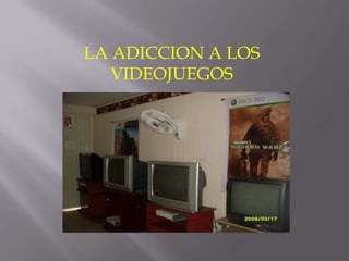 Este documento discute la adicción a los videojuegos y cómo ha afectado las relaciones y comunicación de los niños. Explica que la adicción a los videojuegos significa una fuerte dependencia hacia ellos que ocupa demasiado tiempo y se continúa a pesar de las consecuencias negativas. También describe cómo los sistemas de entretenimiento modernos han llevado a nuevas formas de diversión que se han vuelto el eje central de la vida de algunas personas.