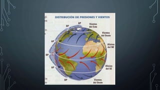 El documento describe los diferentes tipos de vientos, incluyendo sus causas, características y efectos. Explica que los vientos se clasifican según su fuerza y duración, y que pueden producirse a diferentes escalas, desde ráfagas locales hasta corrientes globales. También describe fenómenos meteorológicos como los alisios, los huracanes y tifones, e indica que el estudio sistemático del viento es importante para el diseño de estructuras y parques eólicos.