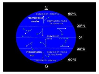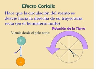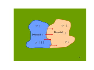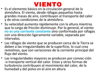 El documento trata sobre los vientos y la meteorología. Explica que los vientos se producen debido a las diferencias de presión atmosférica, y que las principales fuerzas que afectan al viento son la fuerza del gradiente de presión, la fuerza de Coriolis y la fricción. También describe cómo se miden las características del viento como la dirección y la velocidad.