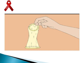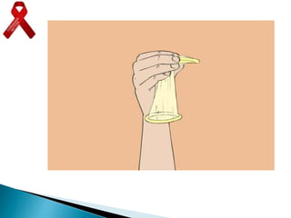 El documento trata sobre el VIH y SIDA. Explica que el VIH ataca los linfocitos del sistema inmune, debilitándolo gradualmente. El SIDA es el síndrome causado por este debilitamiento del sistema inmune. El VIH se puede transmitir a través de relaciones sexuales sin protección, el intercambio de agujas y de madre a hijo. El uso del preservativo es fundamental para prevenir la transmisión.