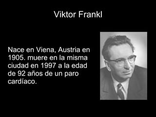 Viktor Frankl desarrolló la logoterapia, la tercera escuela de psicoterapia vienesa. La logoterapia se centra en tres hechos fundamentales de la existencia humana: el deseo de dar sentido, el dar significado al sufrimiento, y la libertad del deseo. Para Frankl, el ser humano está definido por su búsqueda de sentido, y cada persona es responsable de darle sentido a su propia vida a través de elegir sus valores y responder ante las situaciones de la vida.