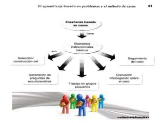 Este documento presenta los principios y componentes básicos del aprendizaje basado en casos. Explica que los casos son herramientas educativas narrativas que presentan situaciones problema reales para fomentar el pensamiento crítico. También describe los criterios para elaborar buenos casos y generar preguntas, así como los principios para la evaluación formativa de este método centrado en los procesos de aprendizaje de los estudiantes.