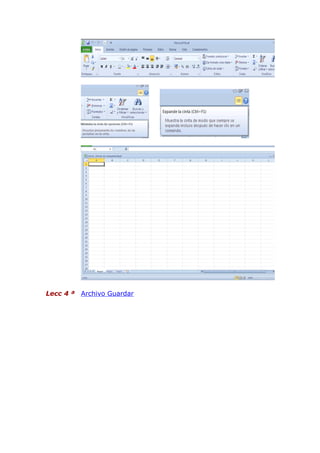 Este documento presenta un curso de 37 lecciones sobre el uso de Excel 2010. Cubre temas como abrir y guardar archivos, navegar hojas y celdas, ajustar formato, insertar y eliminar filas y columnas, usar funciones, generar gráficos, y crear organigramas. El objetivo es enseñar las funcionalidades básicas de Excel a través de una serie de lecciones progresivas.