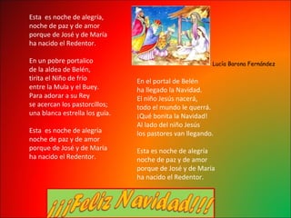 En Belén, Jesús ha nacido en un establo entre una mula y un buey, tiritando de frío. Los pastores, guiados por una estrella, se acercan para adorar a su nuevo Rey. La Navidad ha llegado con el nacimiento de Jesús, que trae alegría, paz y amor.