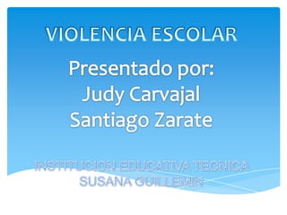 El documento discute la violencia en las escuelas y sus causas. Menciona que la violencia en las escuelas está preocupando a la comunidad educativa y atrae mucha atención pública. Identifica varias causas potenciales de la violencia escolar, como las características autoritarias de las escuelas, el comportamiento cambiante de los estudiantes, los efectos de los medios, el desempleo juvenil y la pérdida de autoridad parental. También describe diferentes tipos de violencia escolar y enfatiza la necesidad de abordar los conflictos
