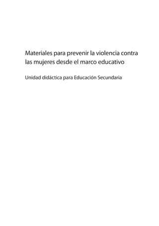 Este documento presenta una unidad didáctica para prevenir la violencia contra las mujeres en la educación secundaria. Explica que la violencia contra las mujeres es un problema grave que viola los derechos humanos. El objetivo es ofrecer actividades y estrategias para que los profesores puedan prevenir y abordar este tema en el aula de una manera crítica. La unidad didáctica forma parte de un plan para sensibilizar a la población y prevenir la violencia de género en la región de Murcia.