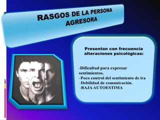 El documento describe los diferentes tipos de violencia doméstica, incluyendo la psicológica, física, patrimonial, económica y sexual. Explica que la violencia doméstica sigue un ciclo de tres fases - tensión creciente, episodio agudo de violencia y calma temporal - y que la violencia tiende a empeorar con el tiempo si la pareja permanece junta. También señala que aunque la mayoría de los casos reportados son de hombres agresores, existe evidencia de que las mujeres también pueden ser agresoras en