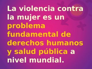La violencia contra la mujer es un problema mundial de derechos humanos y salud pública. Aproximadamente 1 de cada 3 mujeres experimenta violencia física, sexual o psicológica en su vida. En América Latina y el Caribe, entre el 7% y 69% de mujeres han sufrido violencia física por parte de su pareja. La violencia contra las mujeres incluye abuso en el ámbito familiar, la comunidad y por parte del Estado.