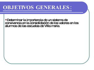 Este documento analiza las causas y tipos de violencia escolar. Identifica factores como la falta de educación en valores, problemas familiares, y tolerancia a la violencia como causas subyacentes. Describe formas de violencia física, verbal y exclusión social. Concluye que para prevenir la violencia se debe promover una cultura de paz en el hogar, la escuela y la comunidad, y proveer oportunidades para los jóvenes.