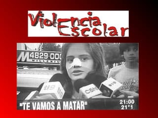 El documento describe los diferentes tipos de violencia escolar, incluyendo la violencia entre alumnos, de alumnos hacia el personal docente, y del personal docente. Define la violencia escolar como acciones u omisiones dañinas entre miembros de la comunidad educativa que ocurren en las instalaciones escolares o relacionadas con la escuela. Explica que la violencia entre alumnos a menudo se debe a factores familiares como el rechazo de los padres, y que ser víctima de niño puede llevar a victimizar a otros de adulto. También