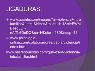 Este documento trata sobre la violencia intrafamiliar, definiéndola como cualquier tipo de abuso de poder entre miembros de una familia. Explica que las causas principales son la falta de educación, valores y empleo, y que los efectos incluyen daños a la salud física y mental de las víctimas. Finalmente, propone cambiar los modelos educativos dentro del hogar para prevenir y erradicar la violencia intrafamiliar.