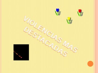 El documento resume diferentes tipos de violencia, incluyendo violencia verbal, emocional, económica, física y sexual. También describe el maltrato infantil como daño recurrente y grave al niño, y la violencia contra la mujer como abuso para controlar y subyugar mediante el miedo y la humillación. En general, la violencia se define como un acto intencional para dominar o lastimar a otros.