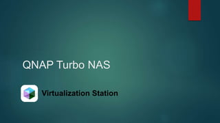 Este documento describe la Estación de Virtualización de QNAP, que permite ejecutar máquinas virtuales (VMs) directamente en el NAS de QNAP. Ofrece beneficios como soporte para múltiples sistemas operativos en VMs, capacidad de usar más aplicaciones a través de las VMs, y ahorro de dinero y tiempo al no necesitar múltiples servidores físicos. La Estación de Virtualización integrada en el NAS ofrece virtualización local sin costo adicional y permite instalar aplicaciones avanzadas directamente en el NAS