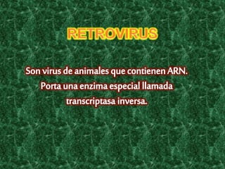 Los virus carecen de metabolismo propio y se reproducen al entrar a un huésped. Están formados por ácido nucleico y proteínas, y pueden tener forma icosaédrica o heliocoidal. Para replicarse, los virus siguen dos ciclos: el lisogénico, donde el ADN viral se integra al de la célula sin destruirla, o el lítico, donde la célula se destruye al liberar nuevos virus.